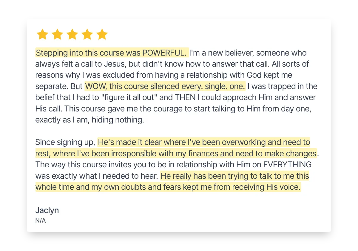 You’ll get the full blueprint I used to rebuild my life with God at the center... even when I felt too far gone, too inconsistent, too confused, and honestly unsure if I could ever trust myself to hear Him right.